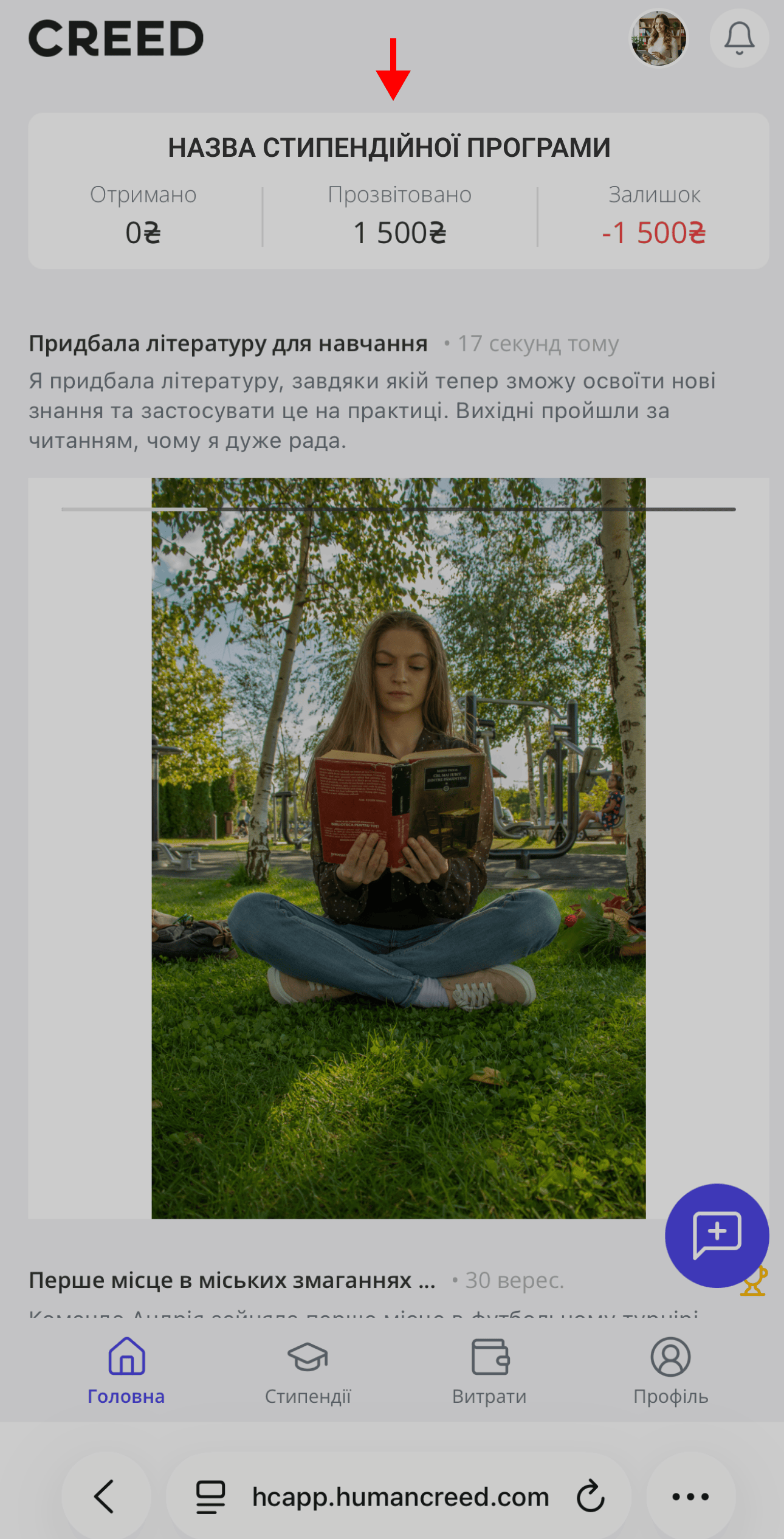 Ми створили додаток CREED спеціально для стипендіатів, щоб ви могли легко і зручно подавати фінансові звіти, а також ділитись успіхами, які стаються завдяки стипендії.