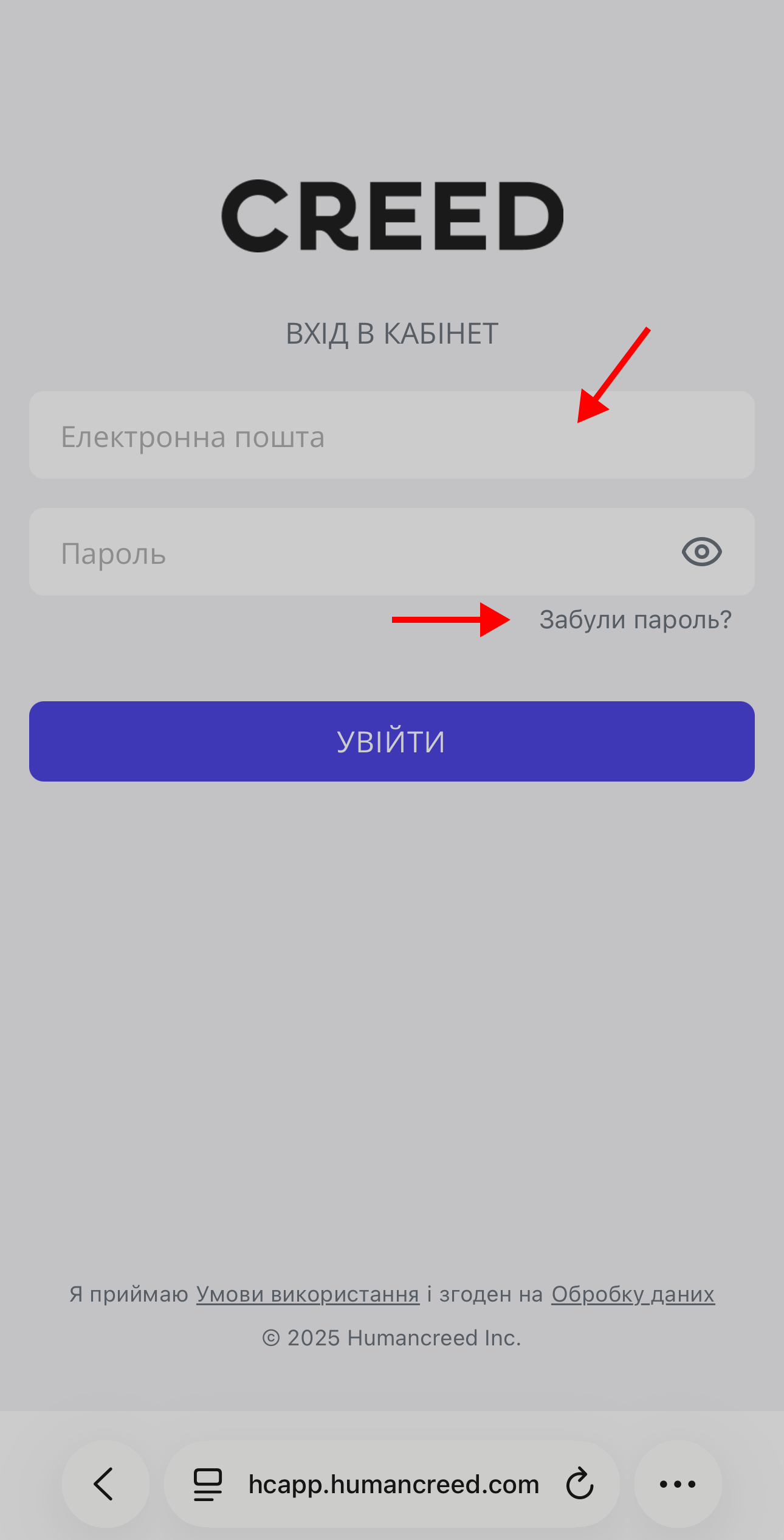 Перейдіть за посиланням: https://hcapp.humancreed.com/